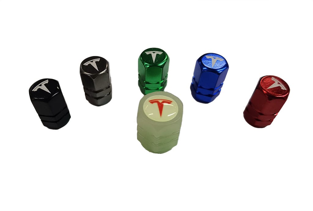 Upgrade boring original valve caps to new ones! Color options are black, gray, green, blue, red and glow-in-the-dark. Compatible with Tesla Model 3, S, X and Y. The package contains four velve caps with Tesla logo.