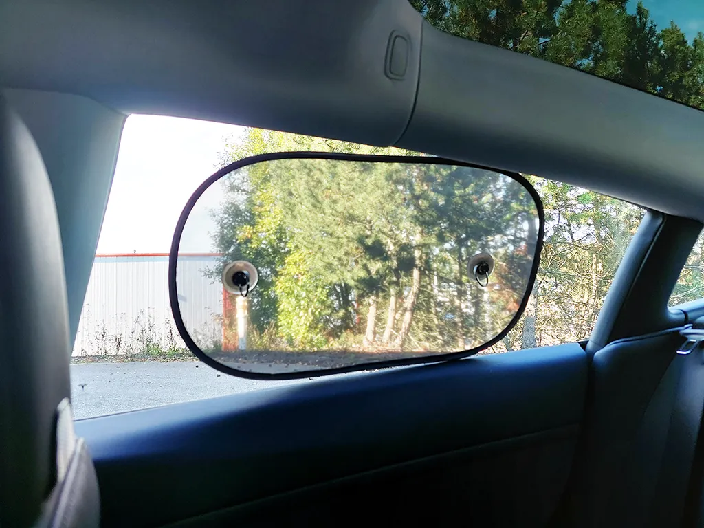 Dit universele zonnescherm beschermt kinderen, huisdieren en volwassenen op de achterbank tegen de zon. Het wordt met zuignappen aan de autoruit bevestigd. De zuignappen hebben twee lussen om het product uit het raam te trekken.