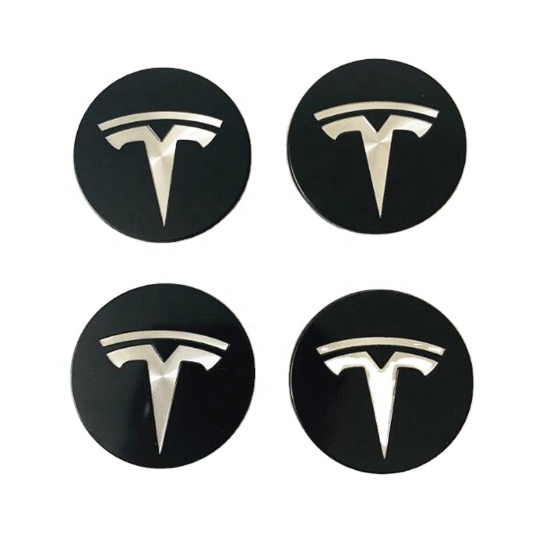 - Naam: Zwarte middendoppen met zilveren Tesla-logo (4PCS)